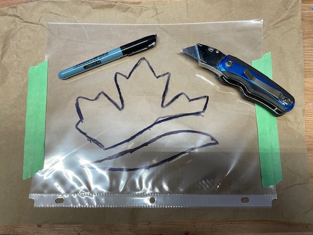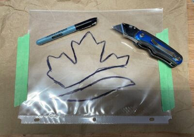 - Découpez le motif à l’aide d’un cutter pour créer un pochoir.