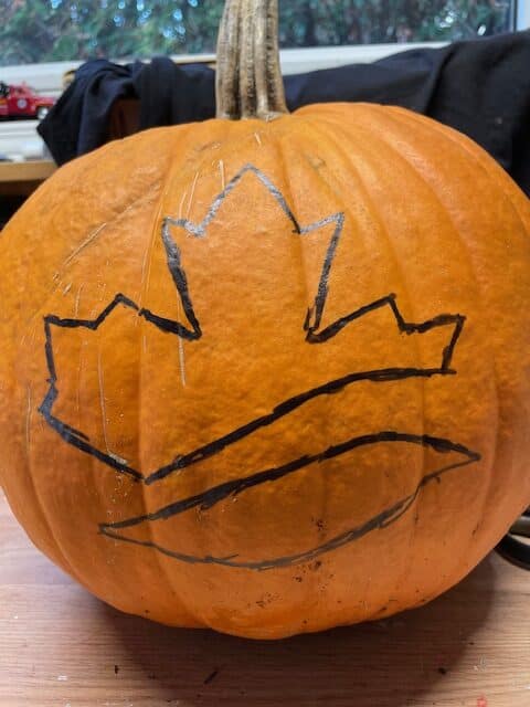 Découpez et/ou sculptez les zones noires.N’oubliez pas de montrer votre magnifique création sur les réseaux sociaux ! Taguez-nous sur Facebook ou Instagram en utilisant #CanBoatPumpkin. Nous avons hâte d’admirer vos chefs-d’œuvre nautiques !