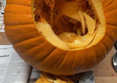 Avertissement : la sculpture de citrouilles peut nécessiter l’utilisation de couteaux ou d’autres outils tranchants. Veuillez vous assurer que les enfants sont surveillés pendant cette activité.